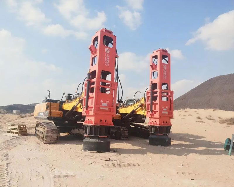 液壓夯實機型號:HC150,錘體重量:10噸,沖擊能量:150千焦,工作高度:5.7米,夯板直徑:1.5米,工作質量:16.5噸,有效深度:4米到8米,工作壓力:32Mpa,工作流量:600L/min,適配挖機/裝載機型號:40-55t挖機改制動臂。SY500H CAT 349VOLVO EC480 SUMITOMO SH490工作頻率:30-80次/min